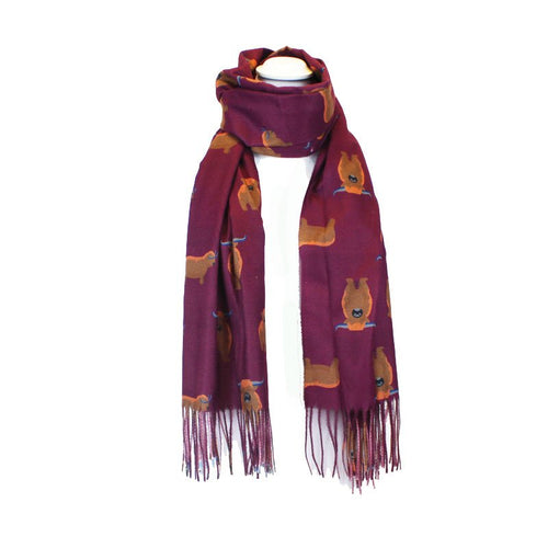 Highland Cow Ladies Print Scarf (Burgundy or Green)
