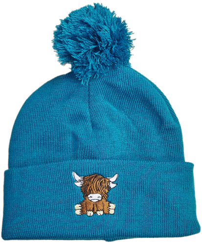 Highland Cow Bobble Hat (Turquoise / Pink / Green / Black)